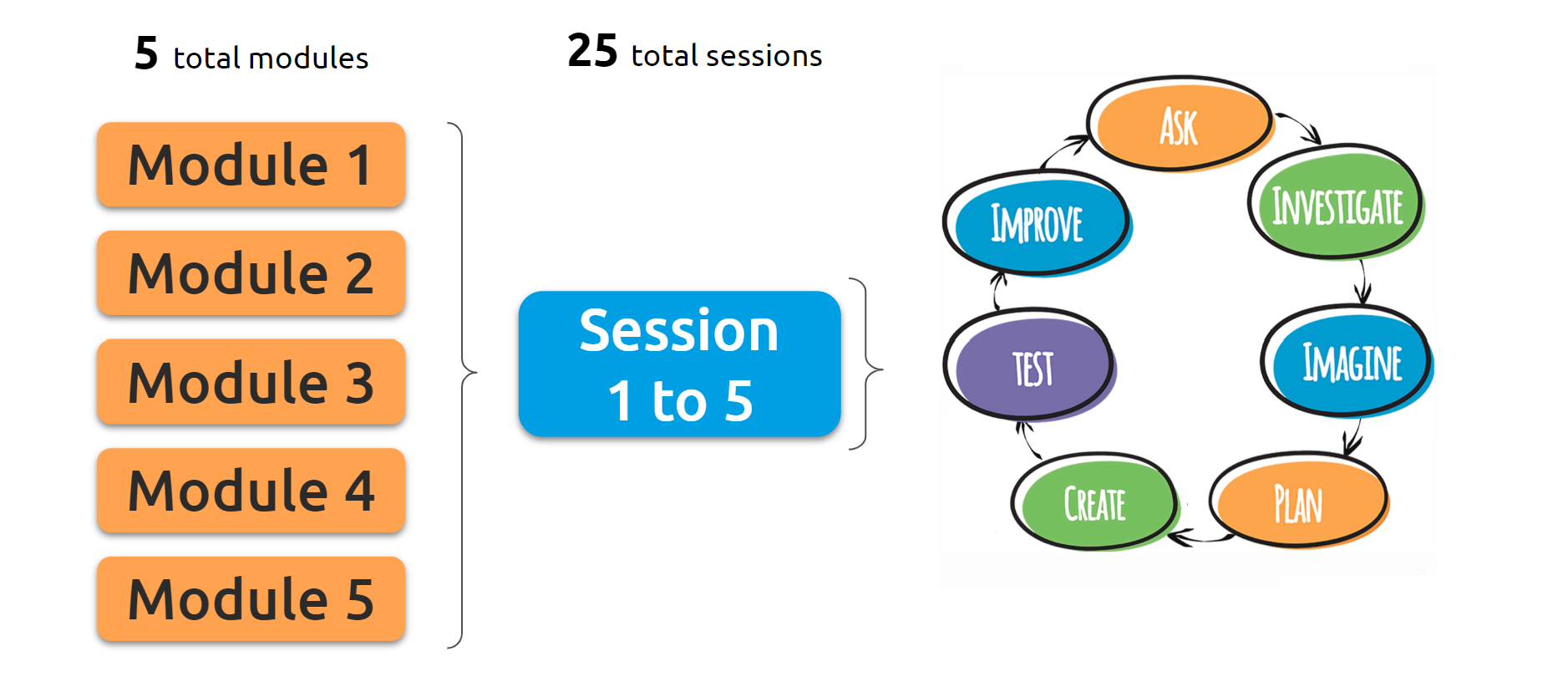 There are five sessions in each of the five modules, and each session has a very specific set of activity directions.