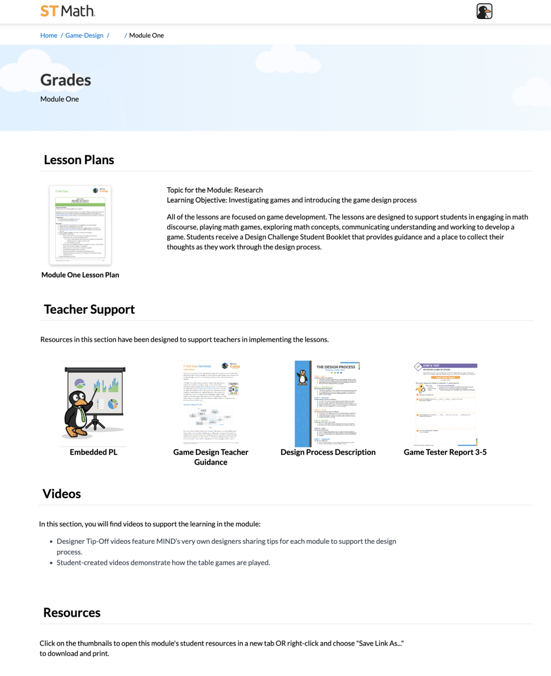 The Videos section includes two incredible tools to support teachers in the ST Math Camp experience: Designer Tip-Off videos and Student-Created Videos.