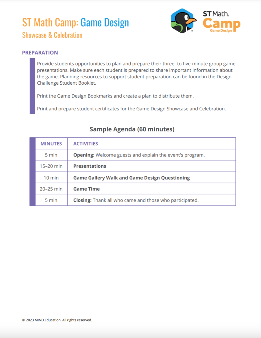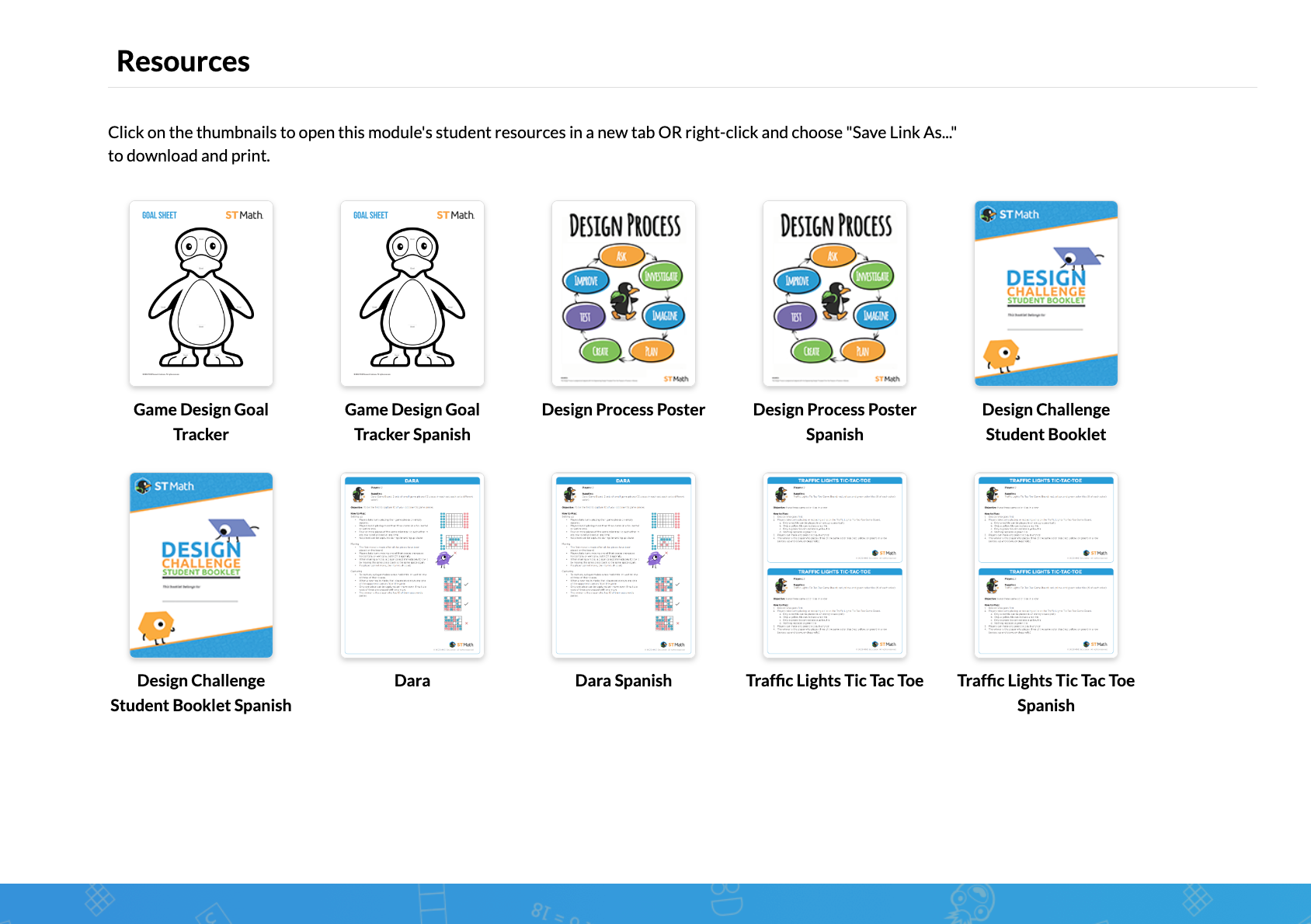 Looking for resources? You have come to the right place! In this section, you will find links to printables that will help you facilitate the ST Math Game Design Camp from beginning to end.