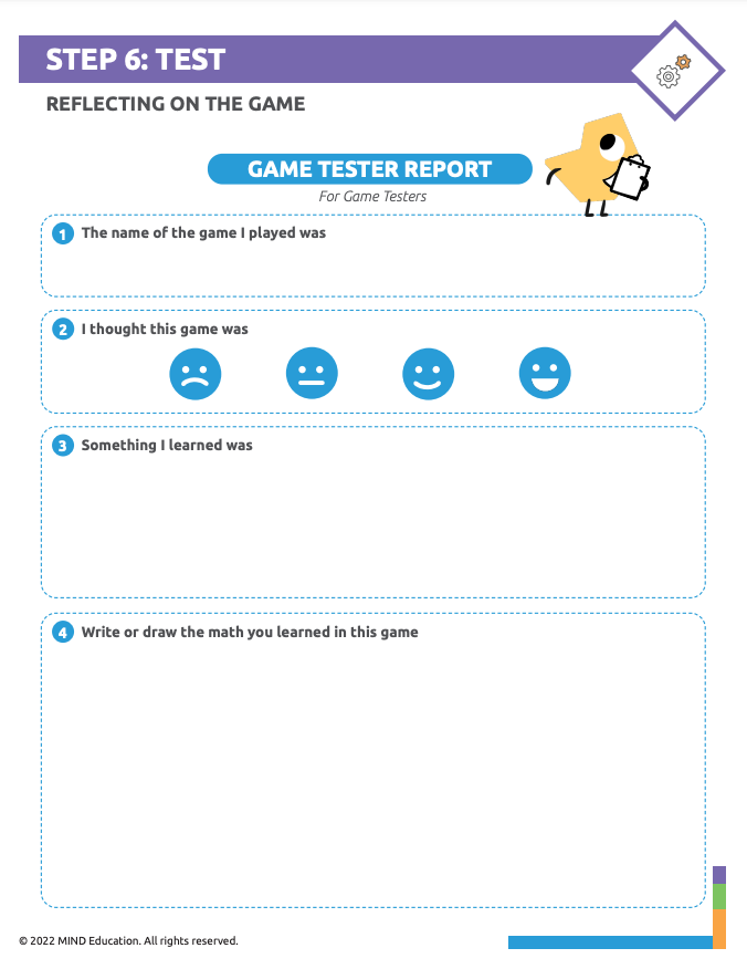 Once students have built their first model, they will test it and see how it works. Classmates use the Game Tester Report to give the designer feedback. The information from the classmates will help students to decide what works and what needs to be changed.