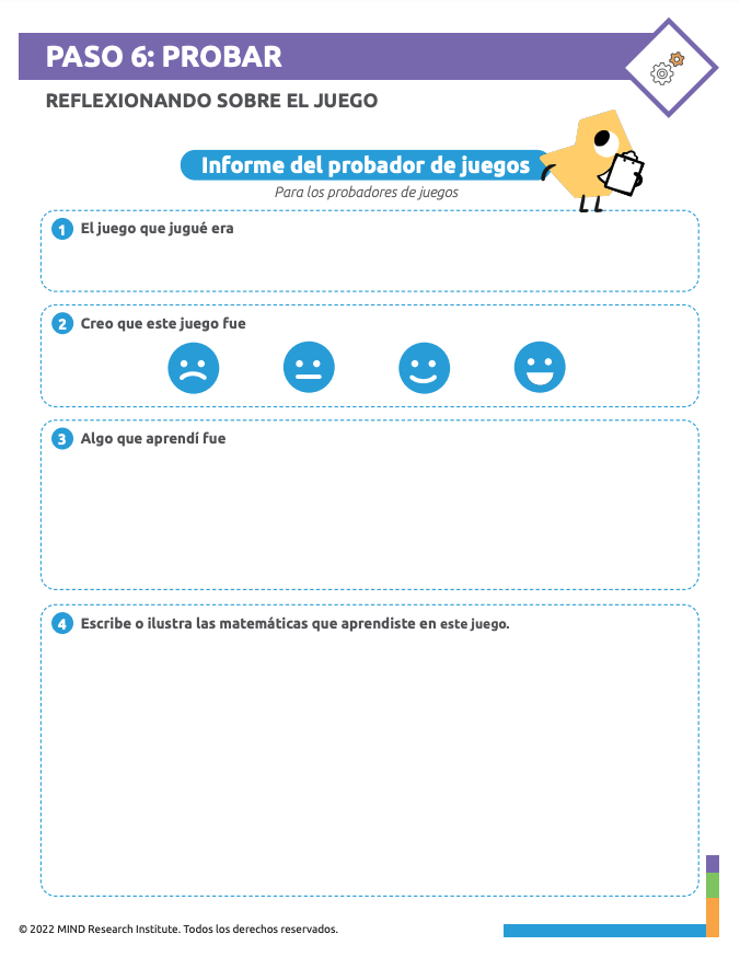 In ST Math Design Camp, students will design and create their own math game in small groups using the design process. Following the Engineering Design Principles, the Game Design Process is divided into seven actionable steps. Students will be guided through teacher facilitated sessions, small group work, and with the Design Challenge Student Booklet. The Design Process encourages students to build and test a prototype, evaluate the feedback from their classmates and make improvements to their design. This process nurtures students’ abilities to create innovative solutions and work collaboratively.