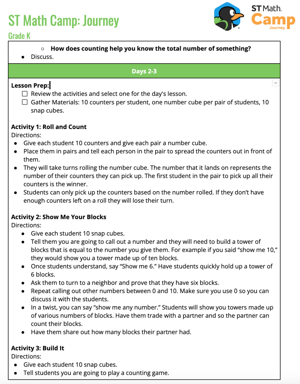 Interested in a shorter ST Math Camp experience? Click here for the ST Math Camp Instructional Modifications Guide.