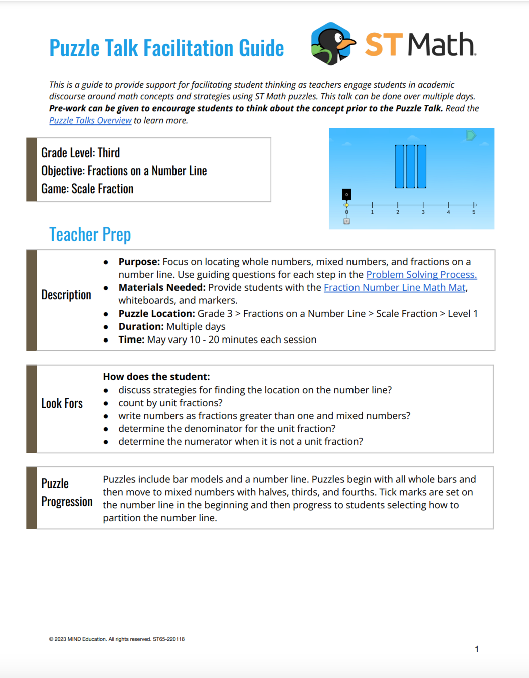 In this Puzzle Talk, a 3rd grade teacher can use the ST Math game "Scale Fractions" to introduce the concept of fractions on the number line.