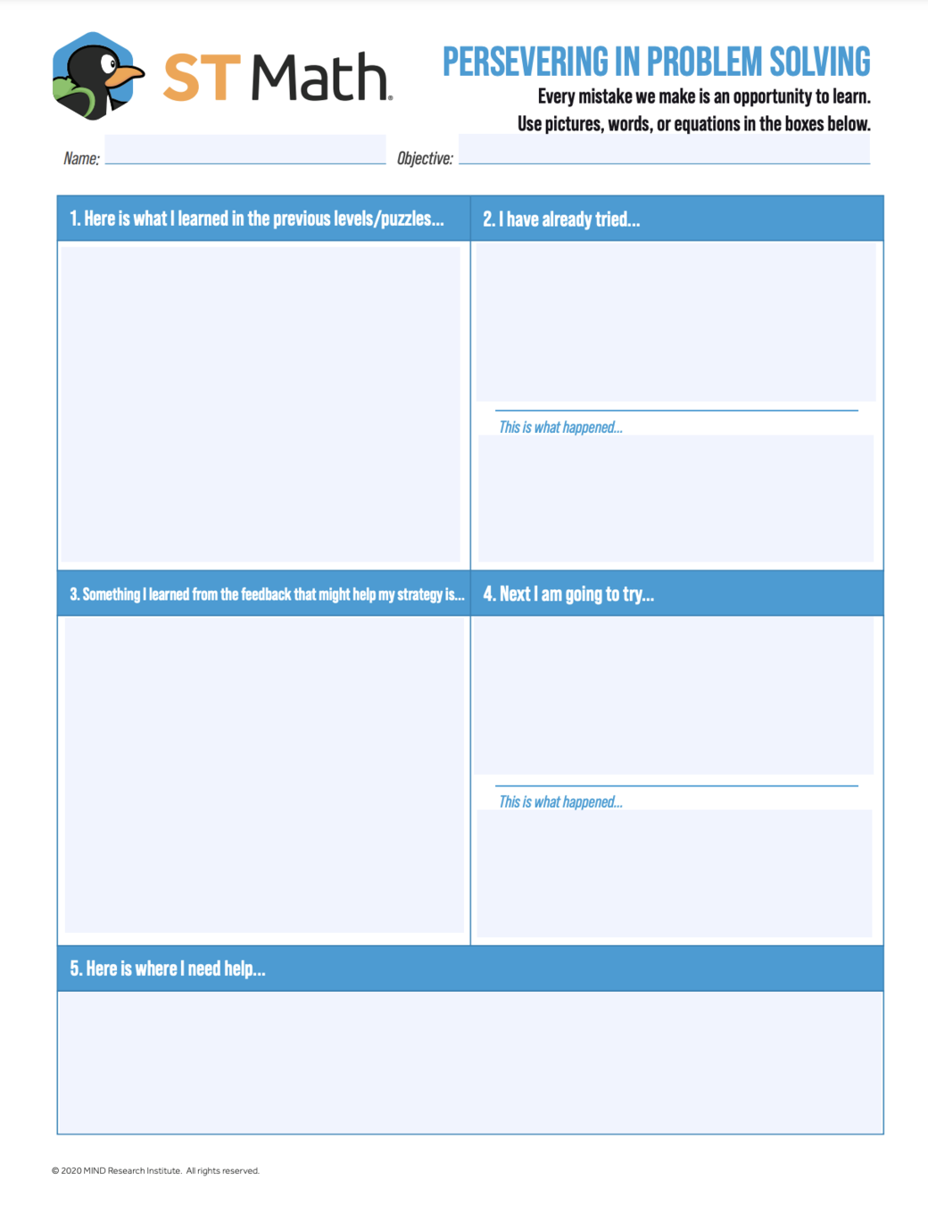 - Have students use the Persevering in Problem Solving Journal to think through their stuckness
