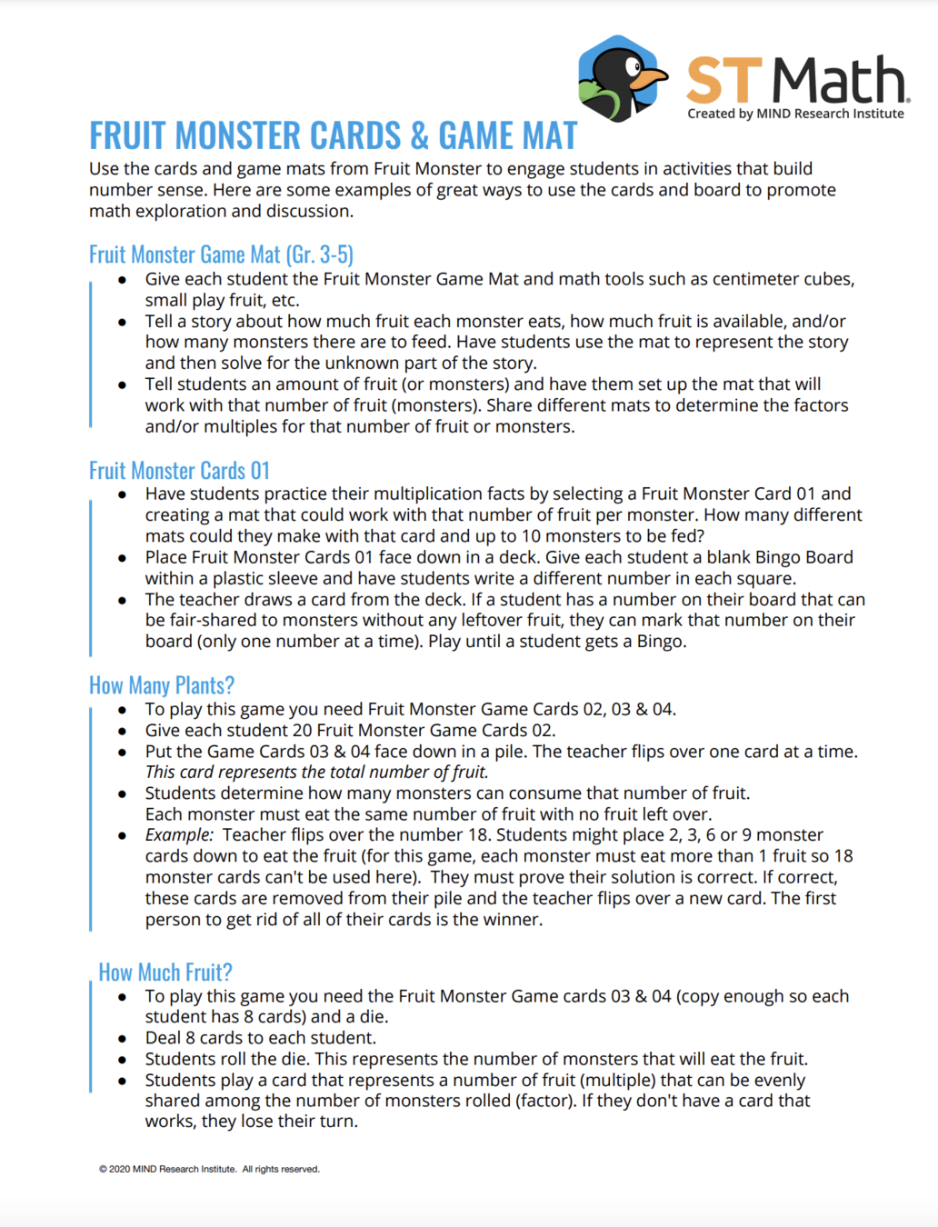 - Use game mats to tell math stories and connect learning to symbolic notation and other math concepts