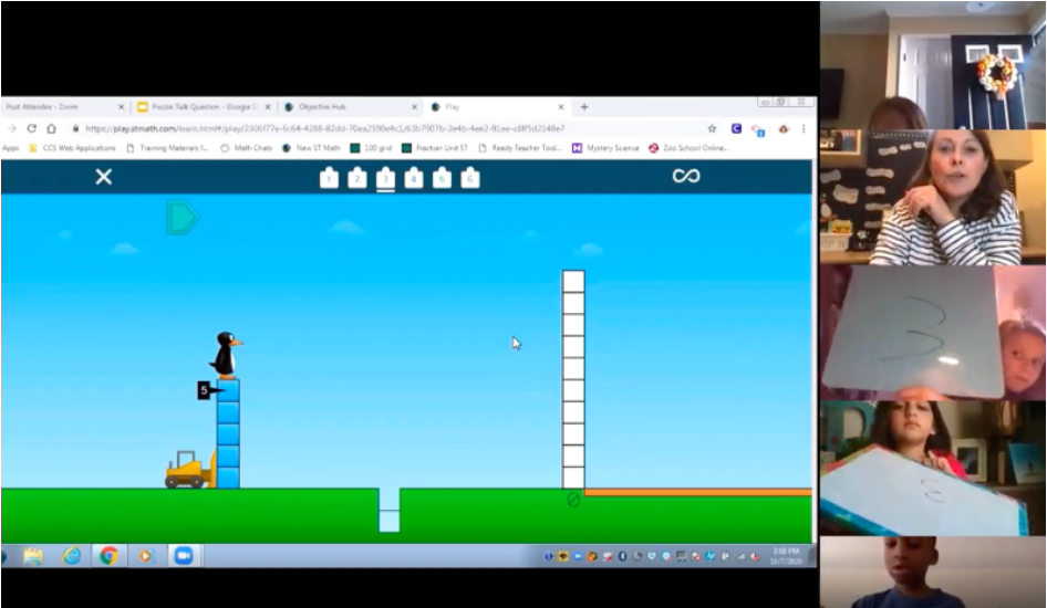 Throughout ST Math Immersion teachers will facilitate student thinking as they engage in Puzzle Talks, complete My Thinking Path, engage in pre-work, solve and discuss word problems, and work through ST Math puzzles.